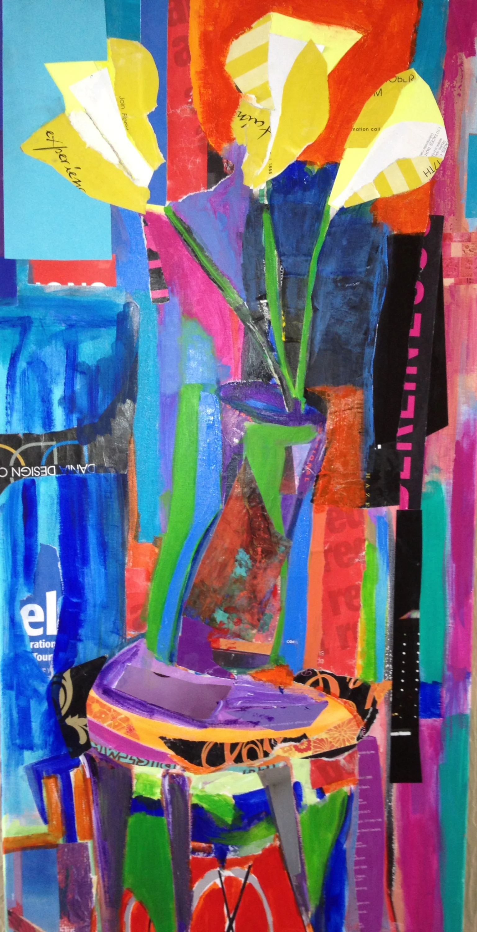 Two paintings selected in juried group show: "Boudoir", the cover painting of this website, a collage mixed media 36 x 18 inches painting and "Floating Island" a collage of Venice, Italy 18 x 36 inches.
